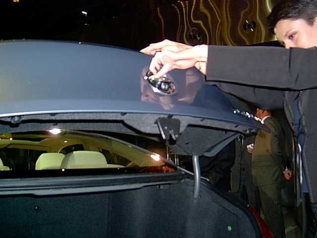 Bmw Klub Polska, który zarekomendował moją szóstkę i w ten oto sposób moja szucha stała się nostalgicznym wspomnieniem przeszłości, a wraz z nią wystąpiła czarna M-ka (znana nam z “Wysokich Obrotów”) i srebrna CS-ka z Łodzi, której właściciel nawet nie raczył przyjechać, tylko wysłał ją na lawecie.auta ustawiono w szeregu, na którego czele zaparkowano nową 6-tkęmoja stała najblizej, więc mam nadzieję że zaraziła się nowością ;-)na zdjęciu poniżej, widać Martynę Wojciechowską przeprowadzającą wywiad. …myślicie że moja 6-tka będzie sławna jak ją pokażą w automaniaku? :-)druga nówka stała na podiumniby bagażnik ok, ale to koło zapasowe jakieś dziwne…zamek do kufra znajduje się pod znaczkeim.trzy dolne linijki światła stop świeca zazwyczaj, dwie górne dołączają w razie nagłego hamowania.promień skrętu kierownicy uzależniony jest od prędkości pojazu(!)gdy używamy tempomatu, znajdujące się w przednim zderzaku czujniki utrzymają stałą odległość do poprzedzającego pojazdu.Szef BMW Polska poinformował nas że sprzedano już 115% planowanej ilości na 2004 rok. Od jego pracowników dowiedzieliśmy się że chodzi o 13 szt. Ale jak to ładnie brzmi …115% !!!Dla formalności podam że nowa 6-tka kosztuje 101.225 Euro